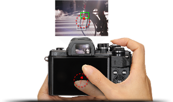 Intuicyjna kontrola ostrości w trakcie korzystanie z Elektronicznego Wizjera. Możesz zmienić punkt ustawienia ostrości, wskazując go palcem na ekranie dotykowym z tyłu aparatu. Dotknij ekranu i przesuń punkt AF tam, gdzie chcesz, przez cały czas obserwując scenę przez Elektroniczny Wizjer.