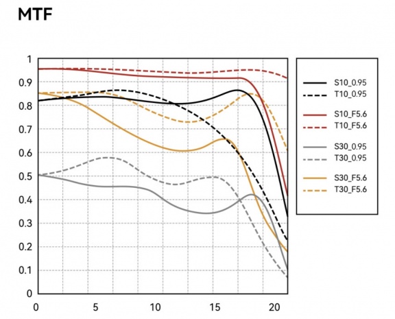 MTF, czyli Modulation Transfer Function, to test, który pokazuje, jak obiektyw przenosi kontrast i szczegóły na matrycę. Prościej: mówi nam, czy szkło daje obraz ostry i szczegółowy od centrum aż po brzegi. Im linie na wykresie są wyżej, tym lepiej obiektyw radzi sobie z detalami i kontrastem. To trochę taki wykres „prawdy” – nie marketing, tylko twarde dane. I tutaj TTArtisan udowadnia, że jego 50-tka F0.95 to nie tylko efektowne liczby, ale realna jakość obrazu.