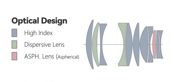 - Konstrukcja optyczna: 11 elementów w 8 grupach